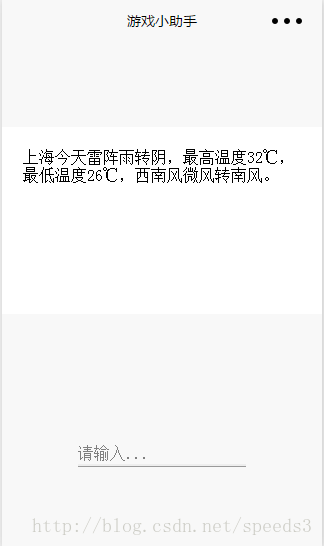 整个小程序界面包含2个部分,一部分用于显示回答,一部分为输入框。小程序的核心就是向olami服务器发送http请求,然后处理结果并显示出来。olami接口的详细使用方法可以参考置顶的两篇博客。处理输入的代码如下: