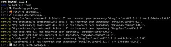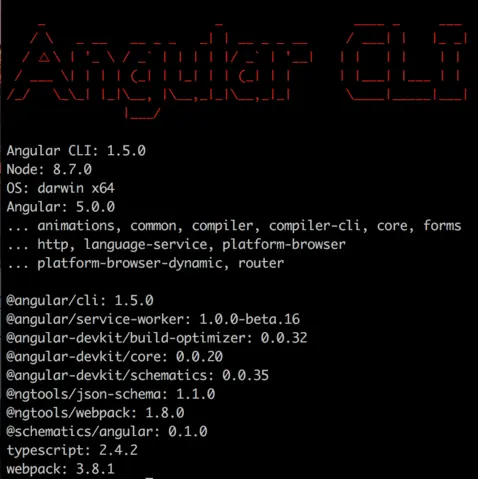 cd PROJECT-NAME这时依赖已经安装完成,执行 ng -v,可以看到如下