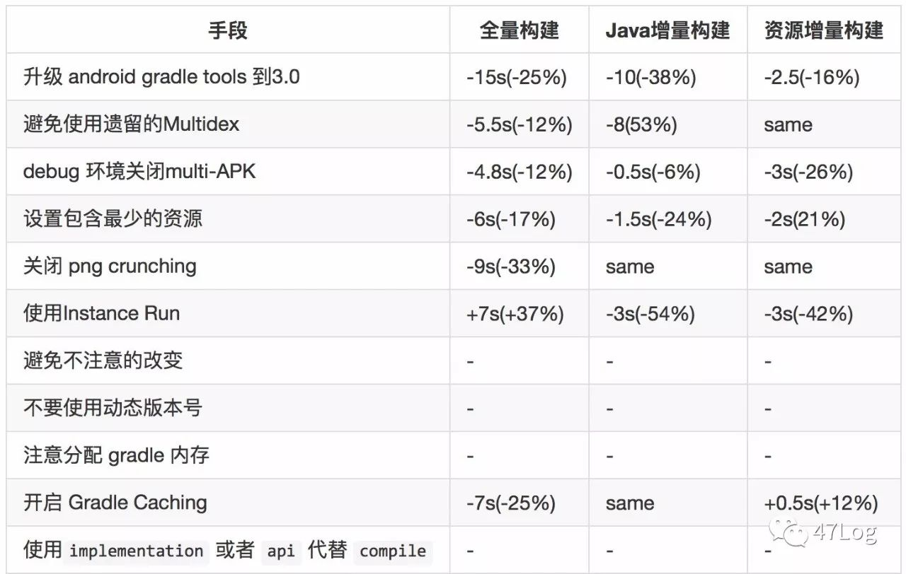 Gradle Profiler 是 Gradle 官方用于自动收集Gradle构建的分析和基准测试信息的工具。具体的使用办法在 github 上有,以后有必要再出个专题吧。这个工具是当上面的办法都无效的时候才推荐使用的。