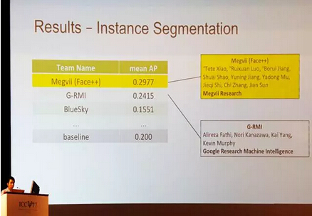 在刚刚结束的全球顶级计算机视觉竞赛MS COCO和Places中,旷视科技的团队击败微软谷歌和Facebook,包揽了三项世界冠军,并在其中的Places物体分割任务中超过第二名Google 4.5个绝对百分点。