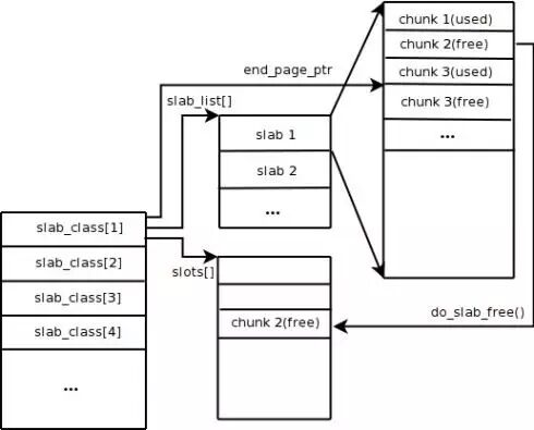 Memcached 默认使用 Slab Allocation 机制管理内存,其主要思想是按照预先规定的大小,将分配的内存分割成特定长度的块以存储相应长度的 key-value 数据记录,以完全解决内存碎片问题。Slab Allocation 机制只为存储外部数据而设计,也就是说所有的 key-value 数据都存储在 Slab Allocation 系统里,而 Memcached 的其它内存请求则通过普通的 malloc/free 来申请,因为这些请求的数量和频率决定了它们不会对整个系统的性能造成影响 Slab Allocation 的原理相当简单。 如图所示,它首先从操作系统申请一大块内存,并将其分割成各种尺寸的块 Chunk,并把尺寸相同的块分成组 Slab Class。其中,Chunk 就是用来存储 key-value 数据的最小单位。每个 Slab Class 的大小,可以在 Memcached 启动的时候通过制定 Growth Factor 来控制。假定图中 Growth Factor 的取值为 1.25,如果第一组 Chunk 的大小为 88 个字节,第二组 Chunk 的大小就为 112 个字节,依此类推。