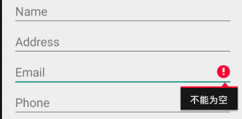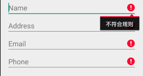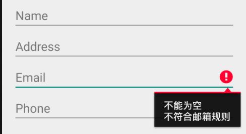 因为上面我们一个EditText只添加了一个规则判断,所以无所谓,比如我这里添加了二个,我们再看的时候会变成怎么样?