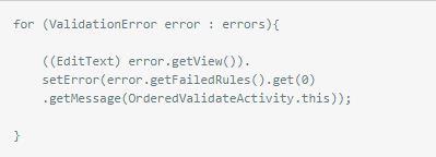 也许有人会说。我希望name错了的时候就提示name,后面的就不管了。报第一个不符合规则的错误,然后有人会说errors.get(0).getView()获取,当然这样是可以的,但是saripaar已经帮我考虑到了: