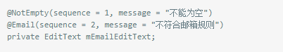 我们有时候对于一个EditText会有多种要求,比如不仅不能为空,而且同时要符合邮箱的标准,这时候我们对于验证也希望有验证顺序,比如先判断是否为空,如果为空,直接就提示错误了。如果不为空再判断是不是符合邮箱的规则。