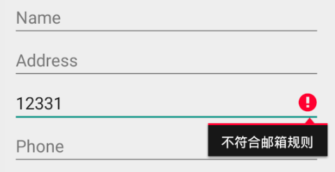 有小伙伴会说,你上面提示的内容的都是不符合规则,我们想要不同的EditText不符合规则后提示不同的内容,还记得我们上面ValidationError有个方法 getCollatedErrorMessage(context),没错,我们可以给每个EditText设置不同的message,然后在验证失败后,显示相应的message即可: