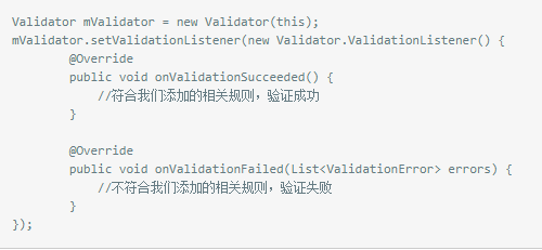 创建Validator对象,并且设置EditText中的内容规则判断后的回调事件: