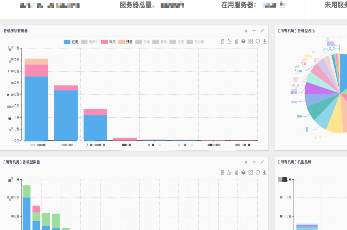 资产情况包括:我们有多少服务器,分布在哪些机房,有多少机柜,服务器是什么机型,品牌和型号,哪些是占用的,哪些是未用的。