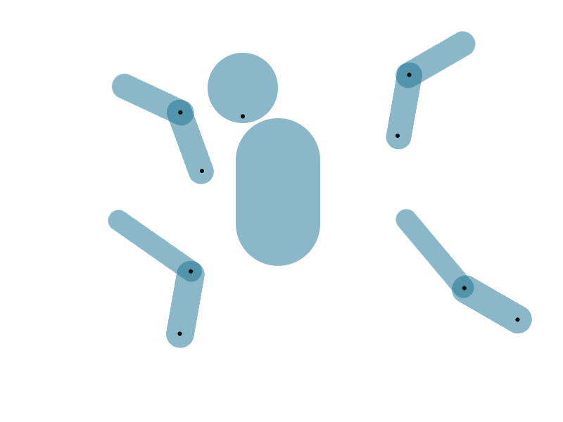 这是?各甩各的,谁都不理谁?拜托,你们可是一个整体哎。现在的问题来了,我们CSS动画属性定义的时候,每个可活动的形状的旋转原点都是给了固定值,那既然如此,怎么才能让末肢的原点随着上肢的摆动而动起来呢?
