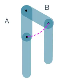 大腿从位置A甩到位置B,我希望得到小腿的效果是始终保持下垂。相当于小腿部分没有摆幅度的运动,也就是沿着图中的虚线轨迹运动。等等,想起来了点什么没?轨迹?我们在路径动画中提到过是可用控制摆动的,