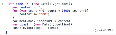 用一个局部变量包层每次更新后的内容,等待循环结束后,一次性的写入页面(尽可能的把更多的工作交给js的部分来做)。可以看到快了近2000倍。显而易见。访问DOM的次数越多,代码的运行速度越慢,因此,通用的经验做法是:减少访问DOM的次数,把运算尽量留给JS处理。这也是Vue或者React为什么要设计virtual dom 的初衷之一:把负责的DOM模型映射成JS对象,不去直接操作DOM而是通过操作JS对象,最后再进行 innerHtml 或者 append。