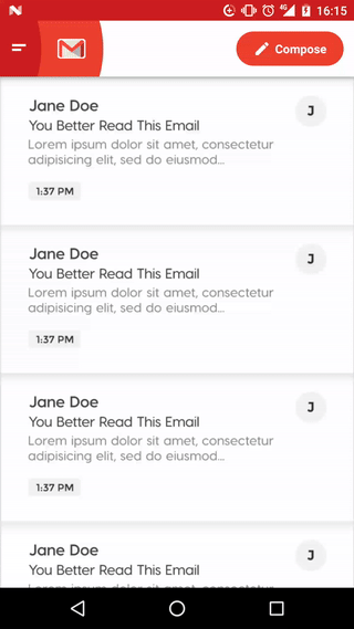 (https://medium.com/@florentchampigny)的另一个很棒的库。一种 top bar 的新设计,与DrawerLayout一起协同工作。灵感来自Gmail Mobile from Weekz
