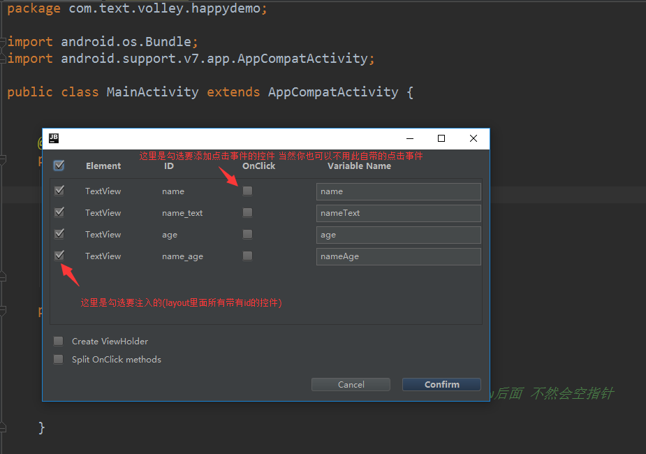 针对上面的两种情况,如果view比较少还好说,如果有几十个view,那么我们一个个的手动删除注解,写findviewbyid语句,简直是一场噩梦(别问我为什么知道这是噩梦)