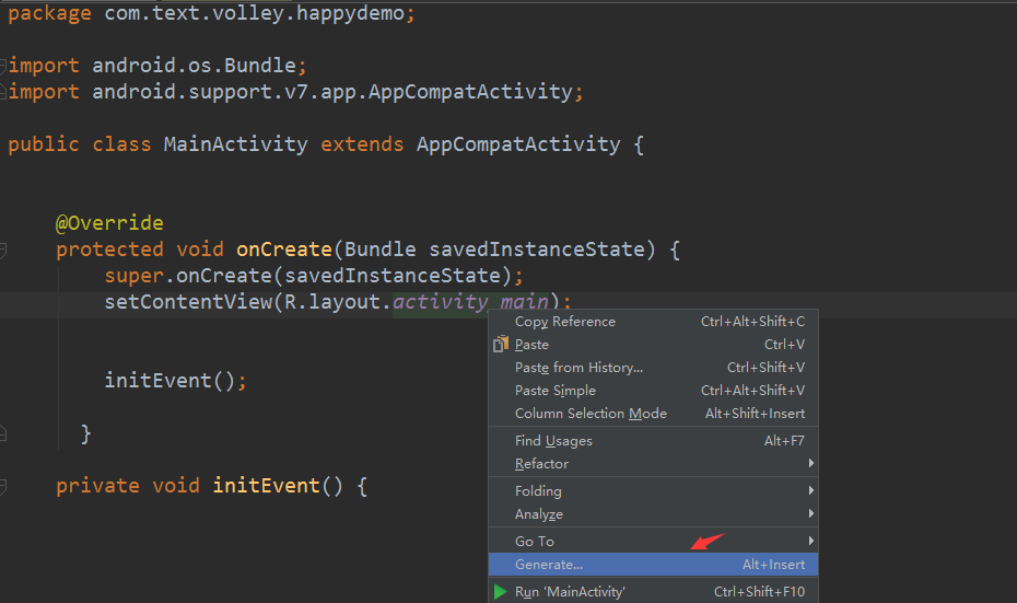 1:在layout右击---点击Generat