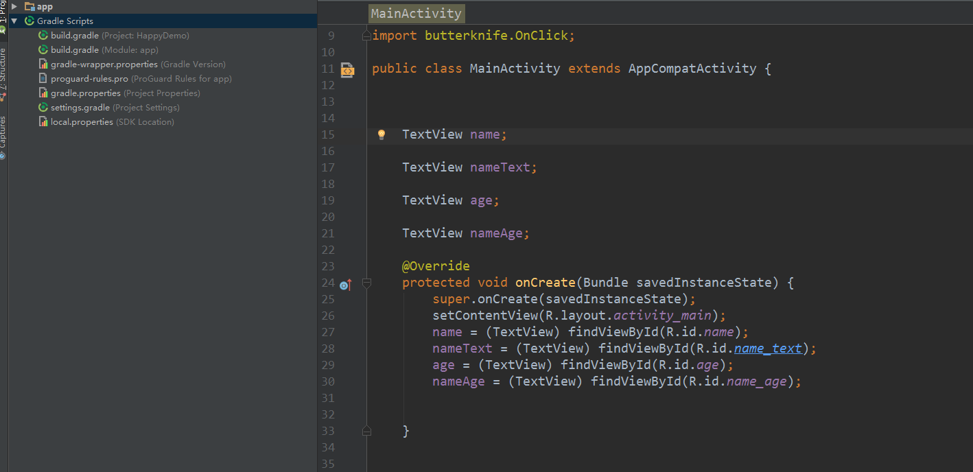 这样项目就回到findViewById的时候了~ 是不是很方便!