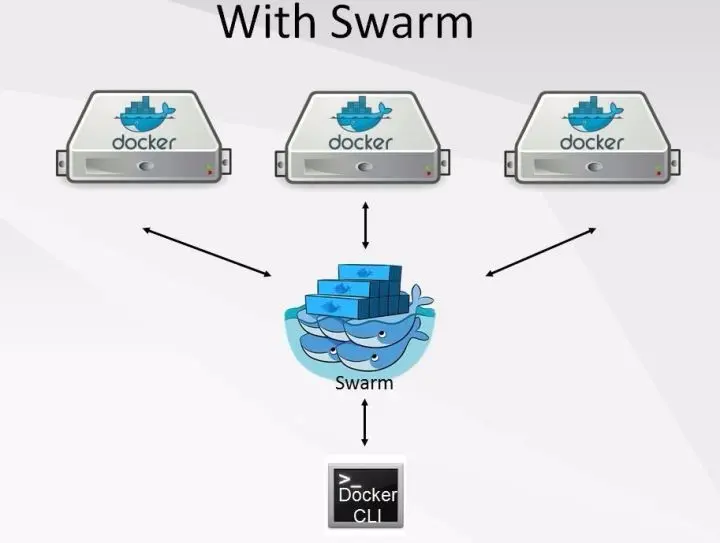 Docker Swarm的最初目标是将一些独立的Docker主机变成一个集群,如下图所示,我们通过简单的Docker命令行工具就能创建一个Swarm集群。