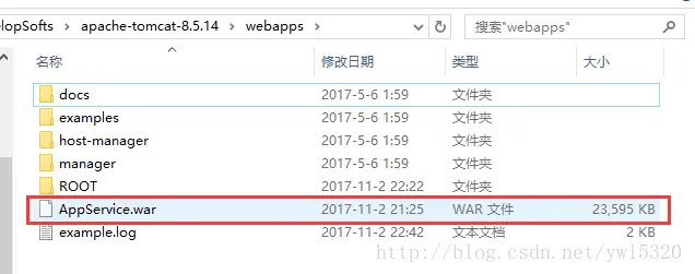复制生成的AppService.war到tomact的webapps文件夹下: