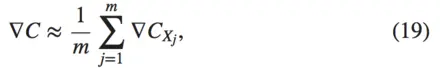 这时,我们可以通过随机梯度下降来加速学习,方法是通过随机的从训练数据集中选择小样本计算梯度∇C,通过对这个小样本平均我们就可以快速得到真实的梯度∇C估计,这有助于加速梯度下降从而学习。