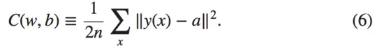 式子中w表示权重,b表示阀值,n表示输入个数,a表示x的输入时的输出向量。输出a依赖于w、b和x的值。为了表示简单, ‖v‖代表v向量的长度。我们把C叫做二次方损失函数;它也叫做均方误差MSE。C是非负的,如果输出的值a越接近真实值,那么C的值就会越小C(w,b)≈0。所以我们的目的就是找到一种最好的权重和b值,使得C的值接近0.我们将使用梯度下降算法来实现这一点。