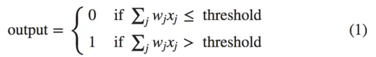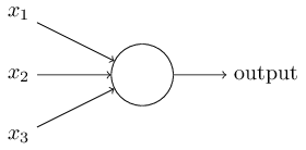 Perceptrons是如何工作的呢?一个perceptron需要几个二进制输入,x1,x2,…,并且产生一个二进制的输出: