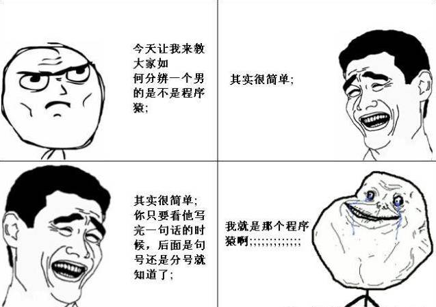 男朋友写代码不理我,于是我悄悄改掉了web.xml的一个配置,他搞了两天都没调通,我告诉了他,结果他要和我分手,我很伤心,但他的朋友告诉我,他没砍死你才说明他真的爱你…”“楼主别tm编了,程序员哪来的女朋友!”“SB,谁告诉你我是女的了。 ”