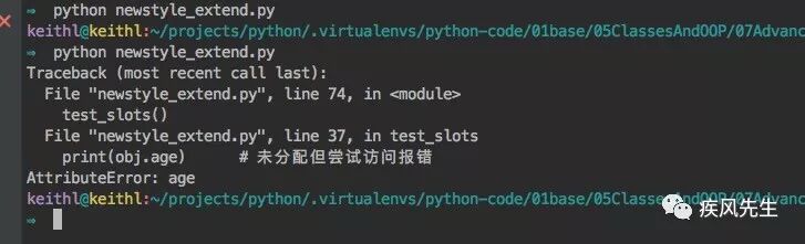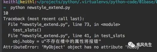 print(obj.age) # obj.hobby = u"不存在槽中的属性将报错">>> python newstyle_extend.py