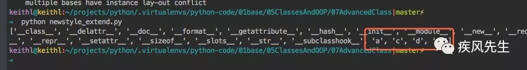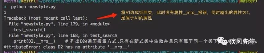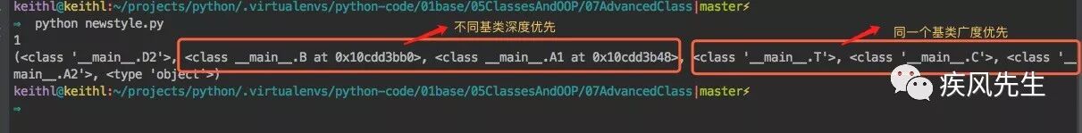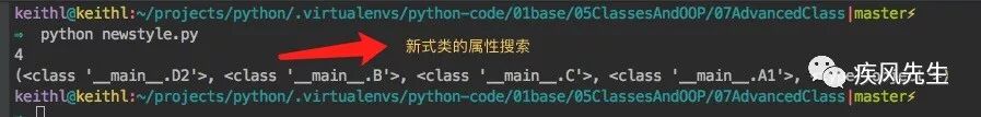 print(D2.__mro__) >>> python newstyle.py # 新式类的输出结果