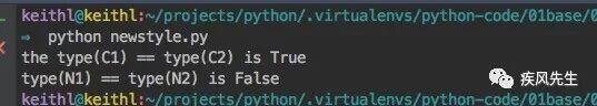 print(type(N1) == type(N2)) # 新式类:type is class,class is type>>> python newstyle.py