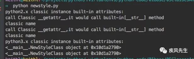 print("call Classic __getattr__,it would call built-in[%s] method " % method_name) return getattr(self.__name,method_name)class NewStyleClass(object): def __init__(self):