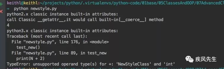 print(N + 2) # unsupported operand type(s) for +: 'NewStyleClass' and 'int',类中没有定义__add__>>> python newstyle.py