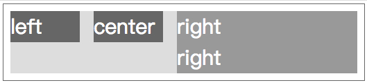 .left,.center{ float: left; margin-right: 20px;}.right{ overflow: hidden;}.left p,.center p{ width: 100px;}