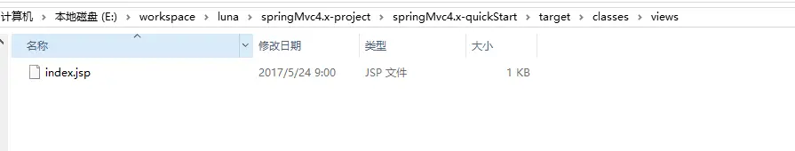 ③ 通过上面ViewResolver的Bean配置,返回值为index,说明我们的页面放置的路径为/WEB-INF/classes/views/。
