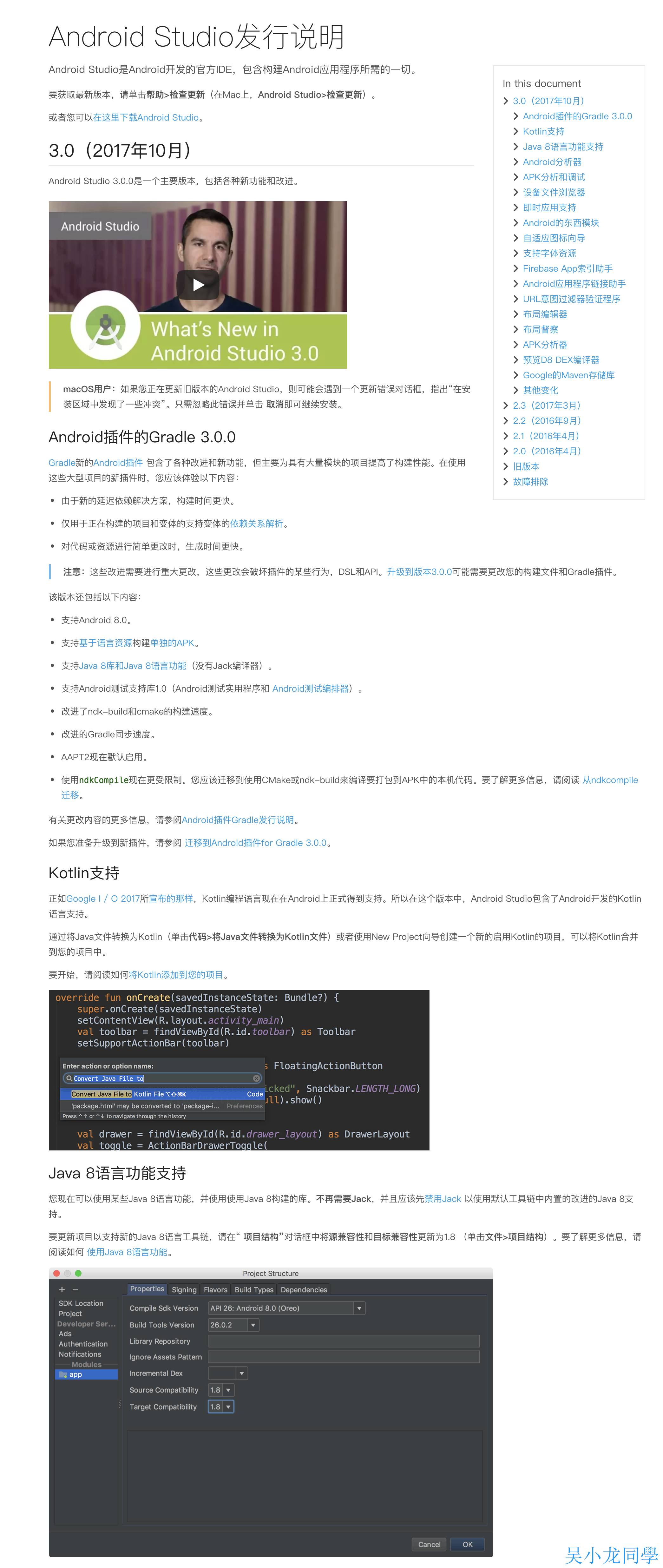 官方更新日志:https://developer.android.google.cn/studio/releases/index.html ,我截图了,用的 Chrome 自带翻译功能,有些翻译不到位,但比我这半吊子英语看省事多了。