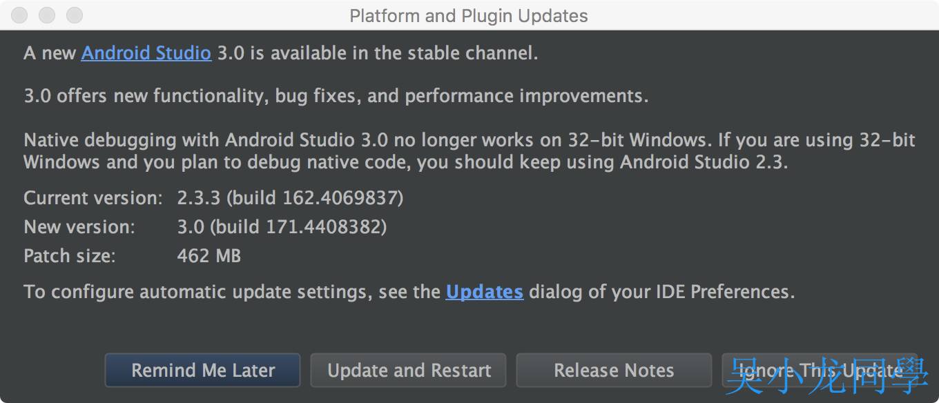 前几天,期待已久的 Android Studio 3.0 release 版来临了,根据以往经验,每次大版本升级肯定要折腾一番,况且公司最近项目紧,因此我没有着急升级。10 月 31 号项目交了第一个版本,有同事离职了,我接了 NDK 的锅,到现在终于有空了,手痒痒点了升级。