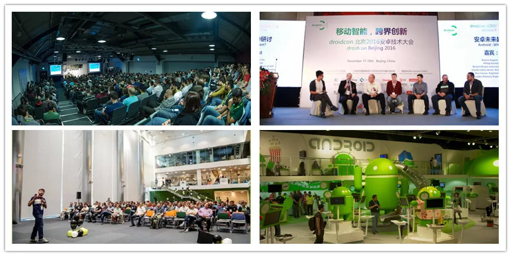 droidcon 于2009年由一个Android爱好者国际研究小组在柏林和伦敦发起。droidcon旨在为Android开发工程师、应用人员、创业者以及用户提供一个开放的交流平台,目前已在全球5大洲,26个国家和地区召开,每年上万人参加,成为安卓领域全球最有影响力的技术大会。