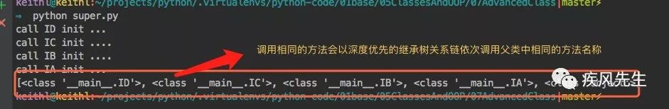 super()调用方法将以MRO的搜索方式进行关系链的调用