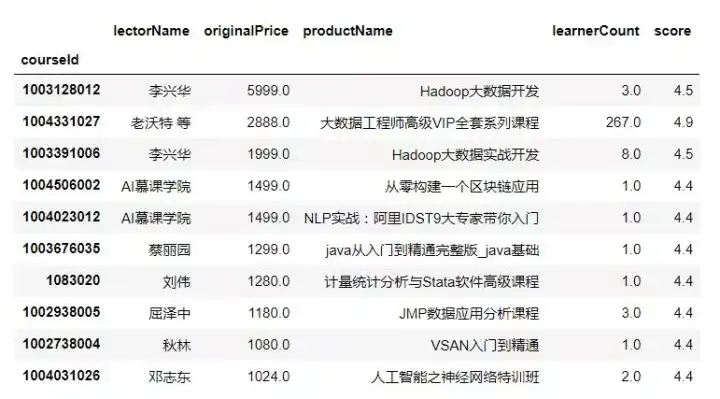 learn_data=myresult.loc[:,['provider','originalPrice','learnerCount','score','productName']]
