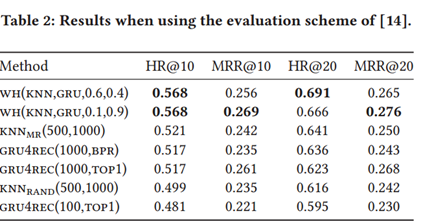 本文的贡献在于提出将session 中的RNN模型,与KNN方法结合起来,能够提高推荐的效果。