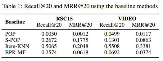 BPR-MF:一种矩阵分解法,新会话的特征向量为其内的item的特征向量的平均,把它作为用户特征向量。
