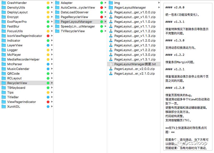 花费一点时间搭建一个私服,所能节省的开发时间是超乎想象的,当然,如果想将项目中部分模块作为组件进行开发,一定要注意做好文档管理,记录好每次更新的内容,方便后期管理。例如我负责的一些模块,不仅在仓库上对文档源码进行了管理,本地也对每个版本的源码做了备份,例如我前段时间开源的 pager-layoutmanager ,在本地是这样的: