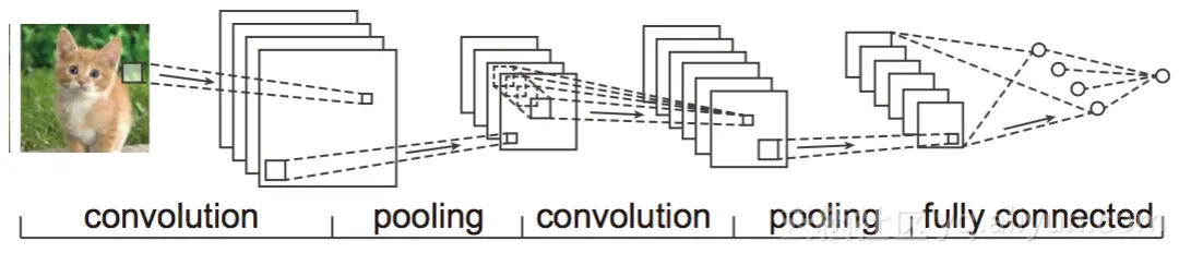 结构:图2展示的是一个典型的卷积神经网络结构。这个网络包含两个卷积层(convolution layer),两个池化层(pooling layer)和一个全连接层(fully connected layer)。