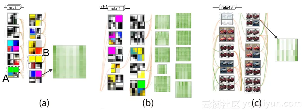不像上述方法,制定了深度CNN作为一个DAG,基于DAG表示,又提出了一个混合可视化,是由矩形填充,矩阵排序和基于双聚类的边缘捆绑。、