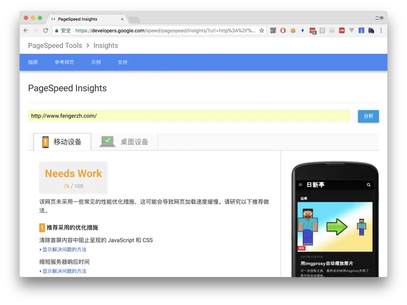 我最常使用的工具不是以上两款,而是一个名叫GTmetrix的网站,这个网站结合了以上两个工具,给出了更加完整的建议。