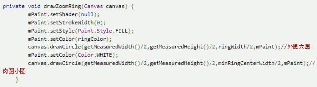 这里是通过控制大圆和小圆的半径大小,从而来控制圆环的位置和大小。然后只需要通过ValueAnimator动态改变ringWidth和minRingCenterWidth的值然后invalidate(),即可以实现第一部分的圆环放大缩小效果。