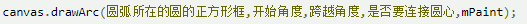 这里其实就是处于不同圆下的两条圆弧,在做旋转和长度变化动画。我们先来看一下圆弧的方法: