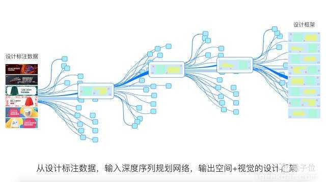 鲁班先将大量设计素材的设计数据进行结构化标注,最后经过一系列的神经网络学习,输出空间+视觉的设计框架。