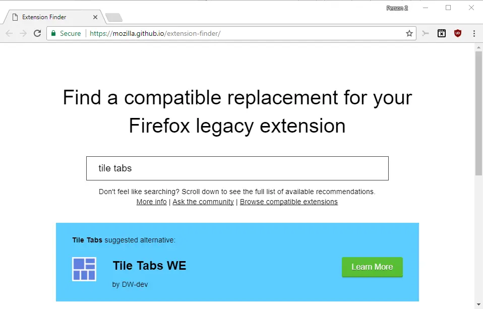 到那时候,任何不是 WebExtension 的扩展都不能在 Firefox 57 中安装,或者如果已经安装了旧版的扩展,亦将被禁用。不过 Firefox 57 会为旧版的扩展提供可替代的解决方案。