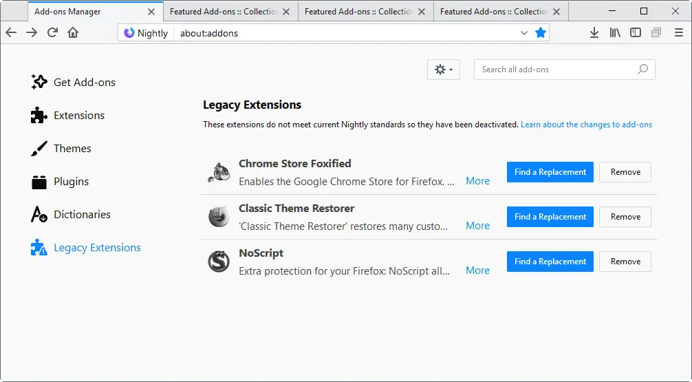 Firefox 57 将在七天后发布正式版。因为 Firefox 57 的扩展将全面迁移至 WebExtension,所以现有的 XUL 扩展都必须重写才能在 Firefox 57 及之后版本上工作,可以预见到时候会有大批仍使用传统扩展的用户发现自己的扩展无法使用。