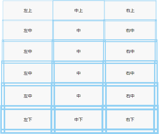 命名为“中”的单元格边框比其他边框都要大,因此渲染的是“中”单元格的边框,因而得出较大边框样式将被渲染,也符合W3C里面对哪条边渲染的解释:“The rule of thumb is that at each edge the most "eye catching" border style is chosen”