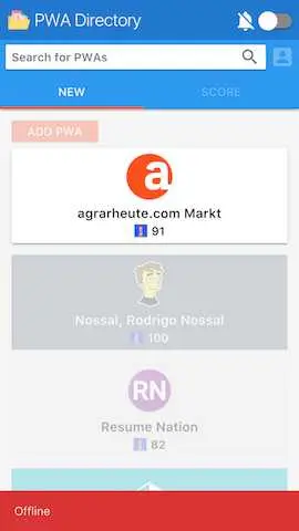最后说说这个项目在离线用户体验上的亮点。PWA 中的离线用户体验绝不仅仅只是展示离线页面代替浏览器“恐龙”而已。离线时,“我究竟能使用哪些功能?”往往是用户最关心的。让我们来看看 PWA-Directory 在这一点上是怎么做的。