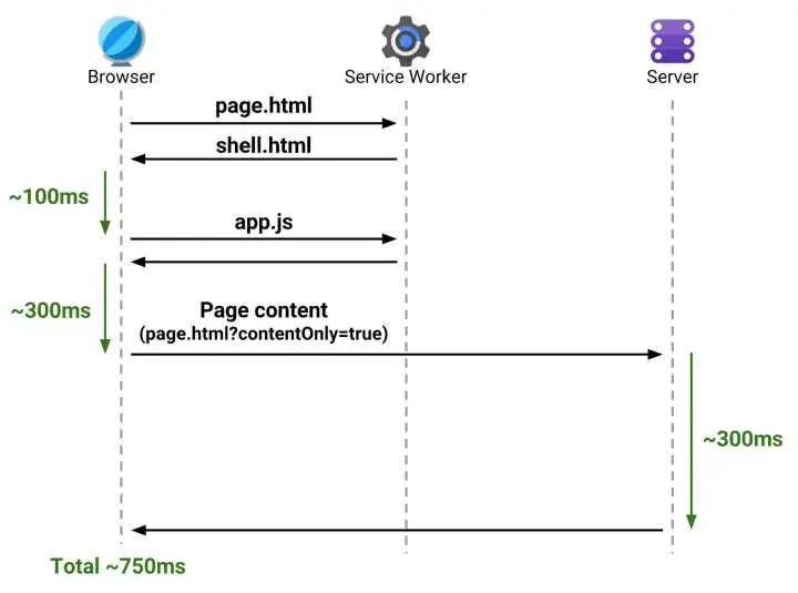 App Shell 是支持用户界面所需的最小的 HTML、CSS 和 JavaScript。对其进行离线缓存,可确保在用户重复访问时提供即时、可靠的良好性能。这意味着并不是每次用户访问时都要从网络加载 App Shell。 只需要从网络中加载必要的内容。